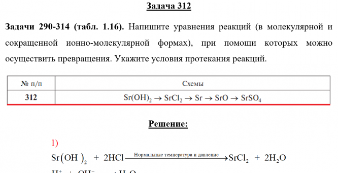 Задача 312 - Напишите уравнения реакций (в молекулярной и сокращенной ионно-молекулярной формах), при помощи которых можно осуществить превращения. Укажите условия протекания реакций.
