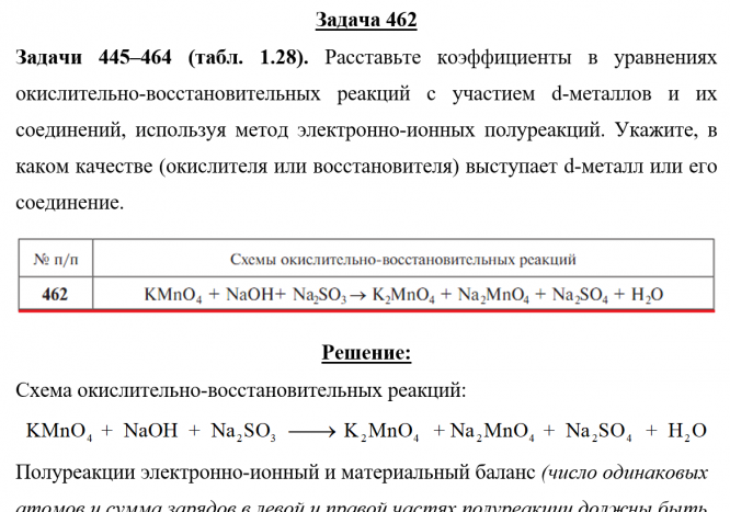 Задача 462 - Расставьте коэффициенты в уравнениях окислительно-восстановительных реакций с участием d-металлов и их соединений, используя метод электронно-ионных полуреакций. Укажите, в каком качестве (окислителя или восстановителя) выступает d-метал
