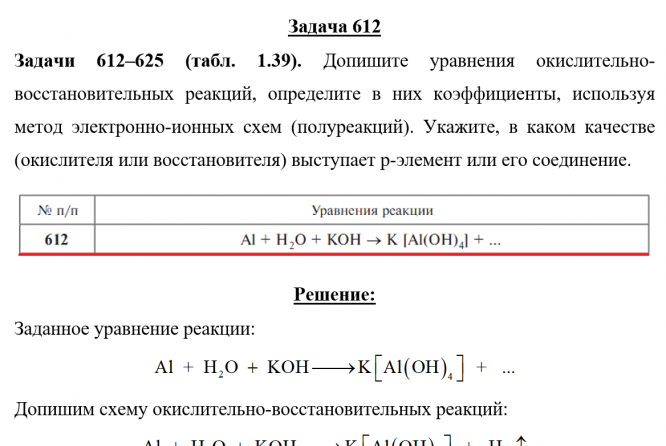 Задачи 612-625 (табл. 1.39). Допишите уравнения окислительно-восстановительных реакций, определите в них коэффициенты, используя метод электронно-ионных схем (полуреакций). Укажите, в каком качестве (окислителя или восстановителя) выступает p-элемент или его соединение.