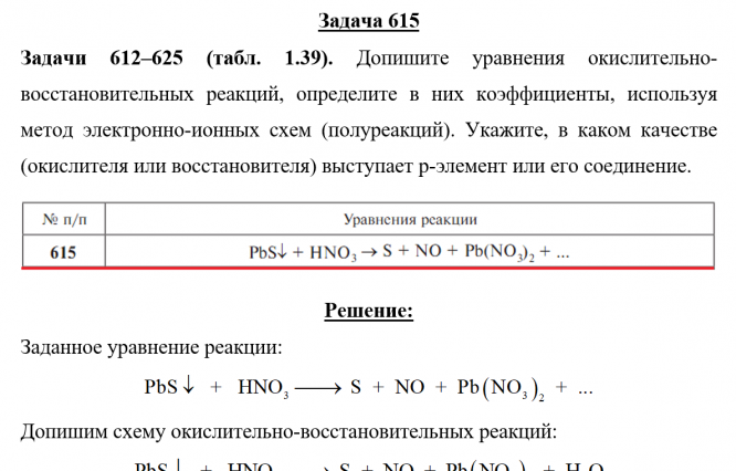 Задача 615 - Допишите уравнения окислительно-восстановительных реакций, определите в них коэффициенты, используя метод электронно-ионных схем (полуреакций). Укажите, в каком качестве (окислителя или восстановителя) выступает p-элемент или его соедине