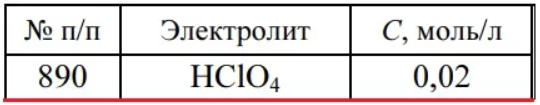 Задача 890: В задачах 881-901 вычислите коэффициент активности и значение pH водного раствора сильного электролита с известной молярной концентрацией С. Напишите уравнение полной диссоциации электролита.