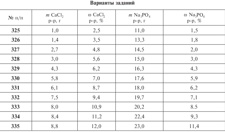 солей, и их массовым долям ω