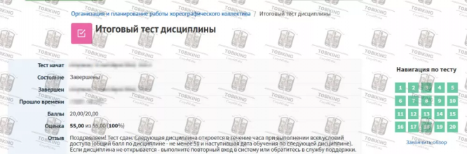Услуга: Итоговое тестирование "Организация и планирование работы хореографического коллектива"