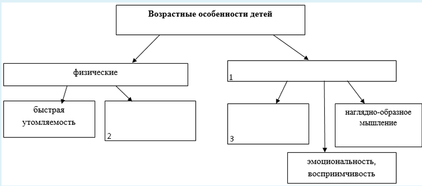 Дополните схему «Возрастные особенности детей, учитываемые в обучении хореографии».