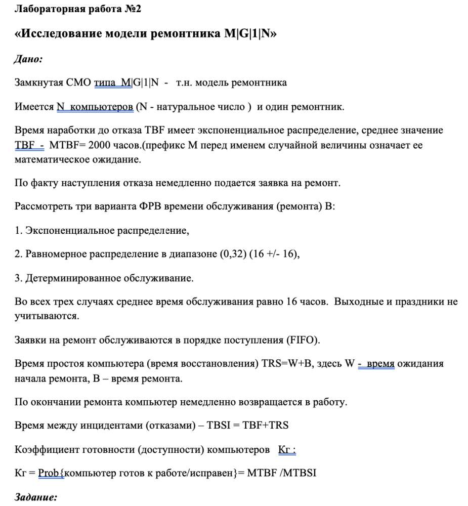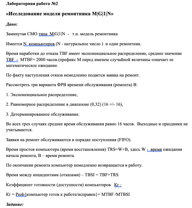 Для студентов МГТУ им. Н.Э.Баумана по предмету Имитационное моделированиеИсследование модели ремонтника M|G|1|NИсследование модели ремонтника M|G|1|N