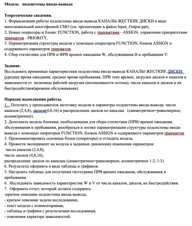 ЛР по имитационному моделированию GPSS № 3, \"Модель подсистемы ввода-вывода\", ИБМ, Бауманка, 2 курс, 3-й семестр, 6 вариант.