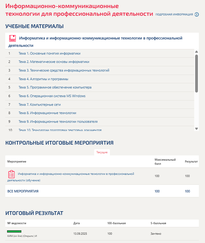 Ответы к зачёту Итоговый тест: Информационно-коммуникационные технологии для профессиональной деятельности (Темы 1-18)