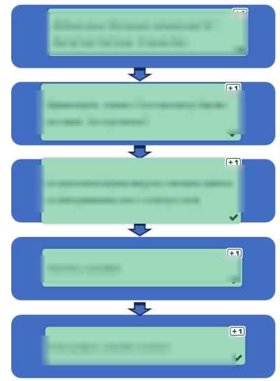 В целях повышения эффективности коммуникации сотрудников с клиентами организации используются скрипты и сценарии. Составьте диалог специалиста справочной службы и клиента, разместив фразы в соответствующие блоки схемы. Обратите внимание, в задании имеются фальшответы (неподходящие блоки для схемы).