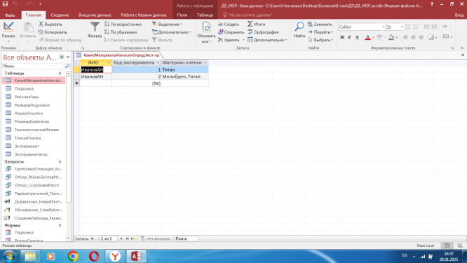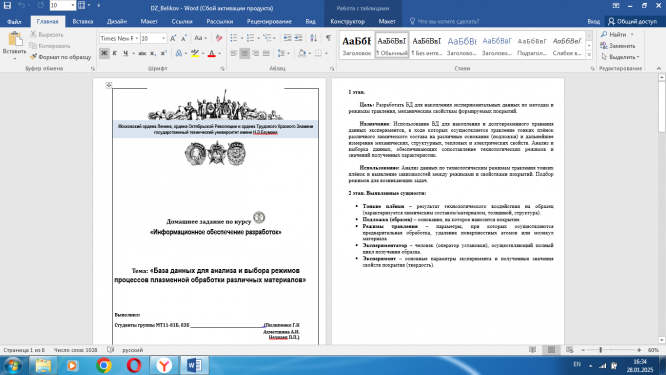 Для студентов МГТУ им. Н.Э.Баумана по предмету Информационное обеспечение разработокБаза данных для анализа и выбора режимов процессов плазменной обработки различных материаловБаза данных для анализа и выбора режимов процессов плазменной обработки различных материалов