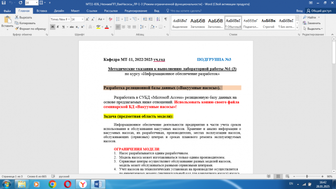 Для студентов МГТУ им. Н.Э.Баумана по предмету Информационное обеспечение разработокРазработка реляционной базы данных («Вакуумные насосы»).Разработка реляционной базы данных («Вакуумные насосы»).