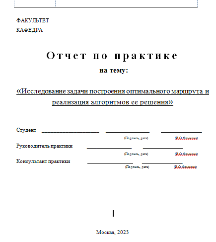 Отчёт по практике: «Исследование задачи построения оптимального маршрута и реализация алгоритмов ее решения»