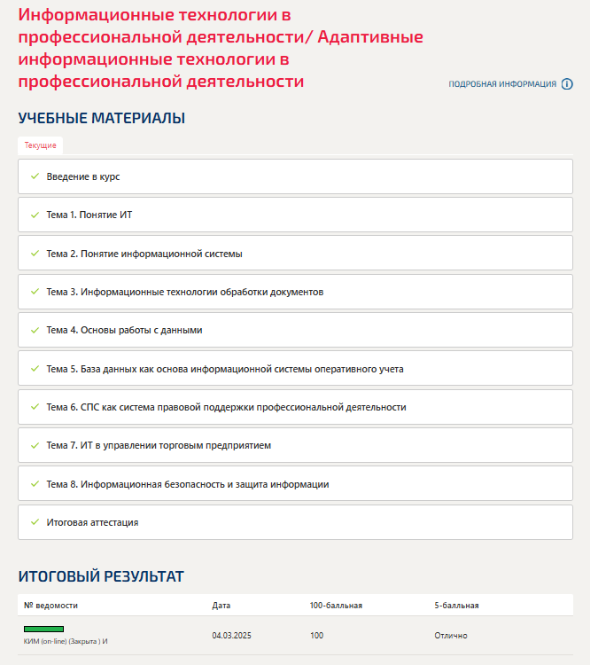 Информационные технологии в профессиональной деятельности/ Адаптивные информационные технологии в профессиональной деятельности (Темы 1-8)