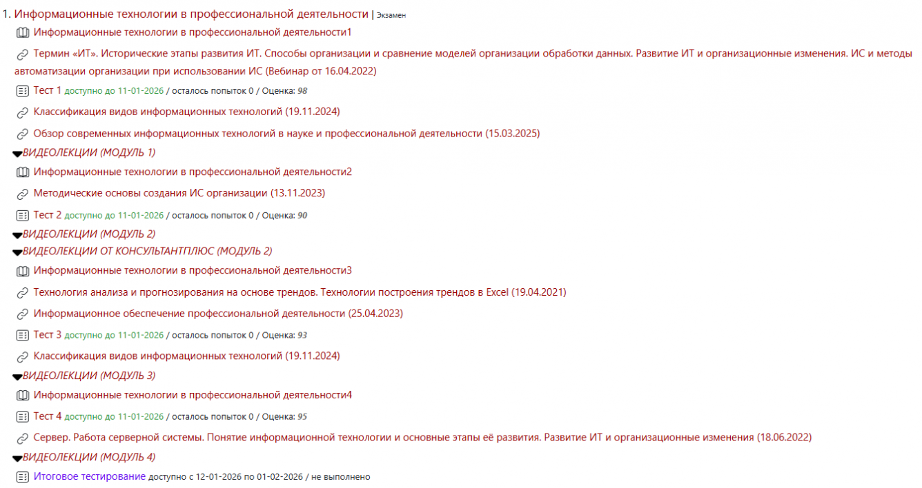 Информационные технологии в профессиональной деятельности (Тесты 1-4)