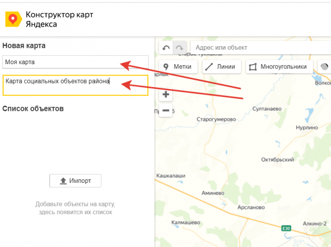 С помощью Конструктора карт можно создать карту со своими объектами.