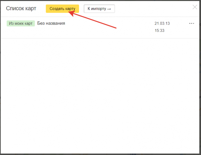 Цель занятия:освоение технологии работы с конструктором карт Яндекс. Краткие теоретические сведения С помощью Конструктора карт можно создать карту со своими объектами. Это может быть, например, схема проезда до вашего дома, дачи или офиса. На карте можно нарисовать: метки — подъезды, пункты встречи и т. д. линии — улицы, маршруты, границы и т. д. многоугольники (в том числе с внутренним контуром) — дома, коттеджные поселки, озера и т. д. Если есть почта на Яндексе, можно перейти на сервис https://yandex.ru/map-constructor/ и сразу приступать к созданию карты. Нажмите кнопку «Создать карту»: Первым делом назовите и задайте описание своей карты (не обязательно, но так будет удобно, особенно если карт будет несколько): Затем приступайте к редактированию карты.