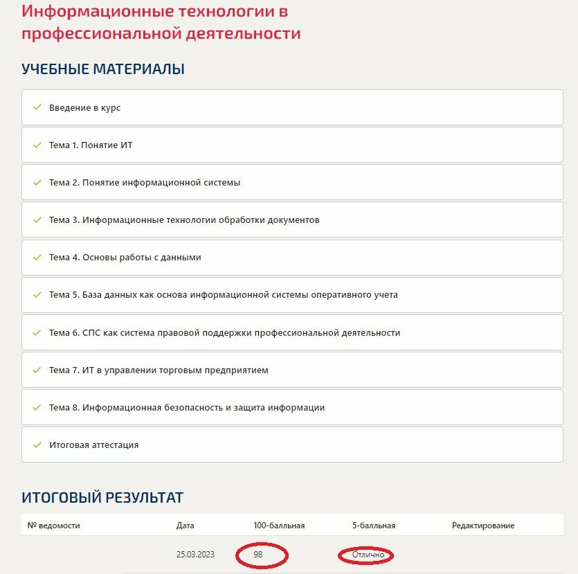 Информационные технологии в профессиональной деятельности (Темы 1- 8) тест с ответами КОЛЛЕДЖ Синергия/МОИ/ МТИ /МОСАП