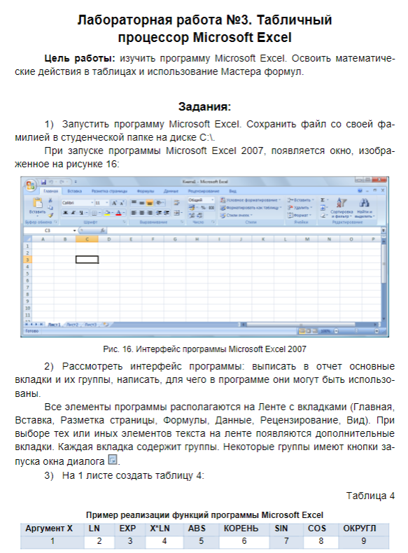 Лабораторная работа 3: Табличный процессор Microsoft Excel