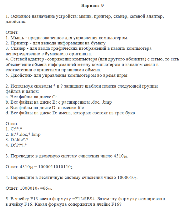 Вопросы/задания к контрольной работе: Контрольная работа вариант 9