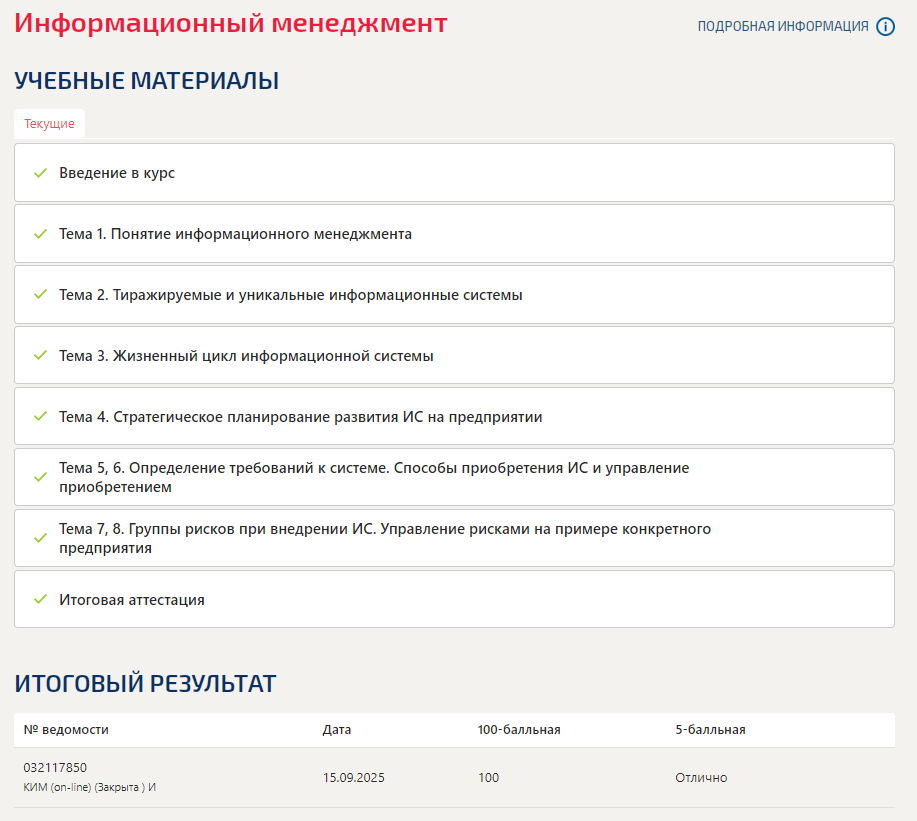 Ответы к экзамену Темы 1-8: Информационный менеджмент вариант Итоговый тест
