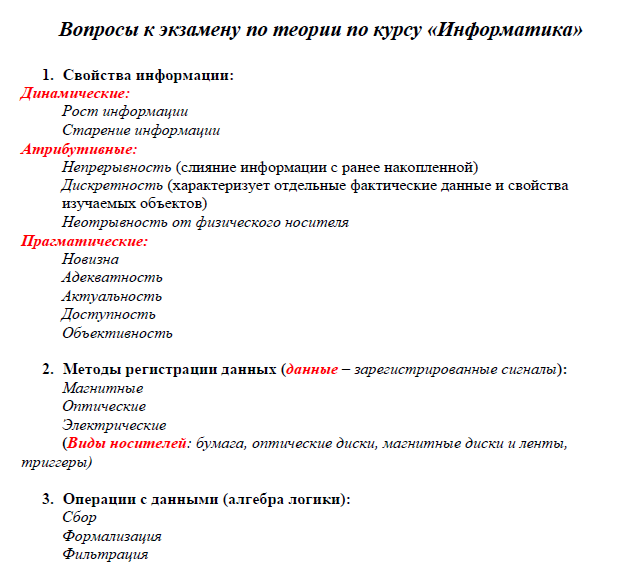 ВОПРОСЫ К ЭКЗАМЕНУ ПО ИНФОРМАТИКЕ
