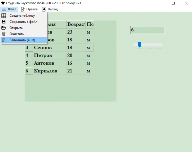 Lazarus Обработчик типизированных файлов. Есть меню и OpenDialog. 1. Определить и записать в новый файл студентов мужского пола 2003-2005 гг. рождения