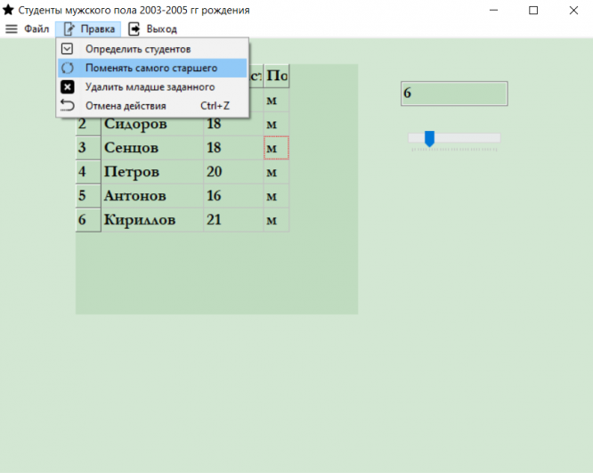 2. Найти самого старшего студента и поставить его на место самого младшего