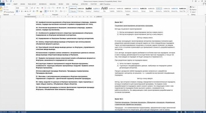 Характеристики ответов (шпаргалок) к экзамену