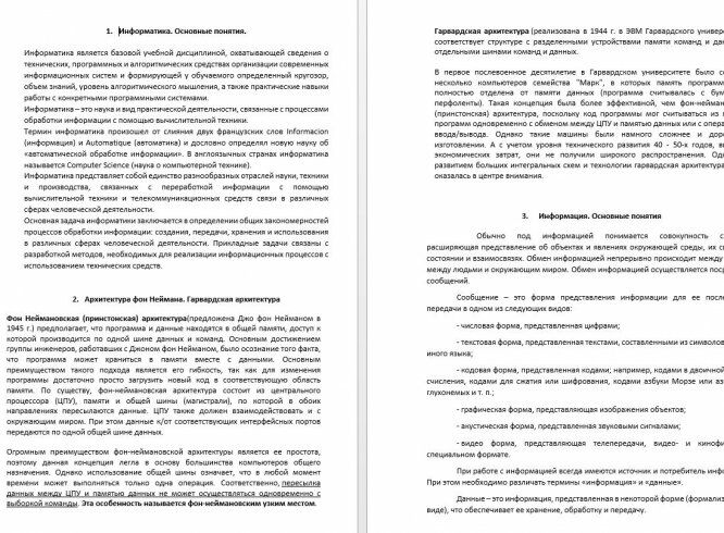 Характеристики ответов (шпаргалок) к экзамену
