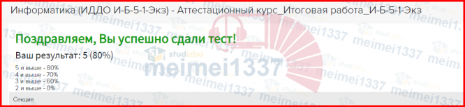 Для студентов ИДДО НИУ «МЭИ» по предмету ИнформатикаАттестационный курс Итоговая работа - 80%Аттестационный курс Итоговая работа - 80%