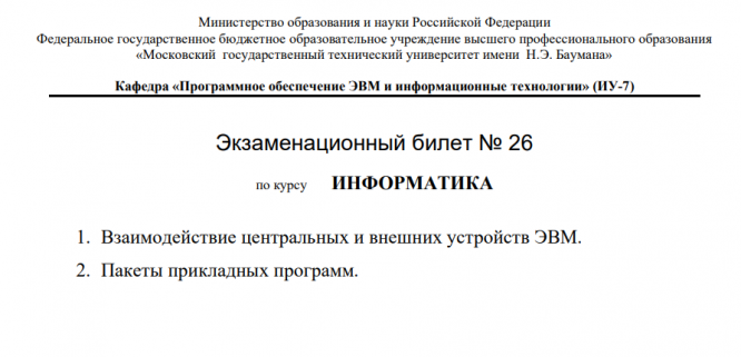 Для студентов МГТУ им. Н.Э.Баумана по предмету ИнформатикаВопросы и ответы к экзаменуВопросы и ответы к экзамену