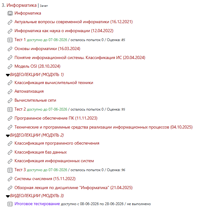 Ответы к зачёту Тесты 1-3: Информатика (Тесты 1-3)
