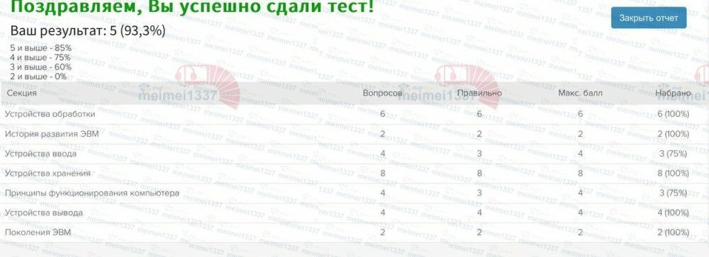 Главная » Учебные материалы » Информатика » Ответы (шпаргалки) » ИДДО НИУ «МЭИ» » Несколько классов/семестров » Номер КМ-3 » К заданиям » КМ-3. Технические средства реализации информационных процессов. Тестирование - 93.3%