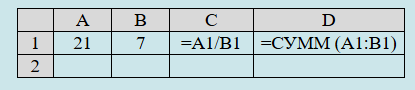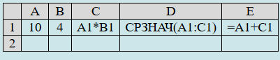 Представлен фрагмент электронной таблицы MS Excel 2010 в режиме отображения формул. В результате вычислений ячейка D1 примет значение