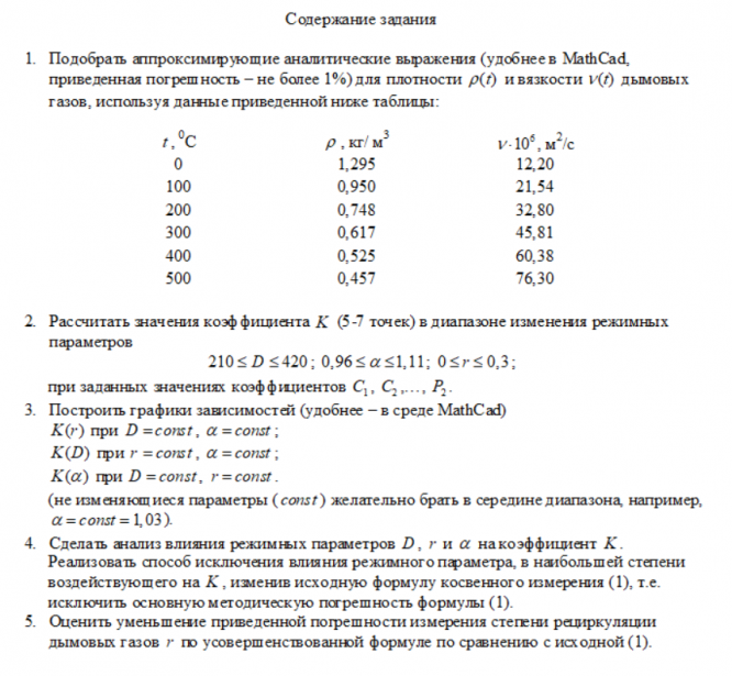 ДЗ: Разработка метода измерения степени рециркуляции дымовых газов с использованием пакета MathCad вариант 24
