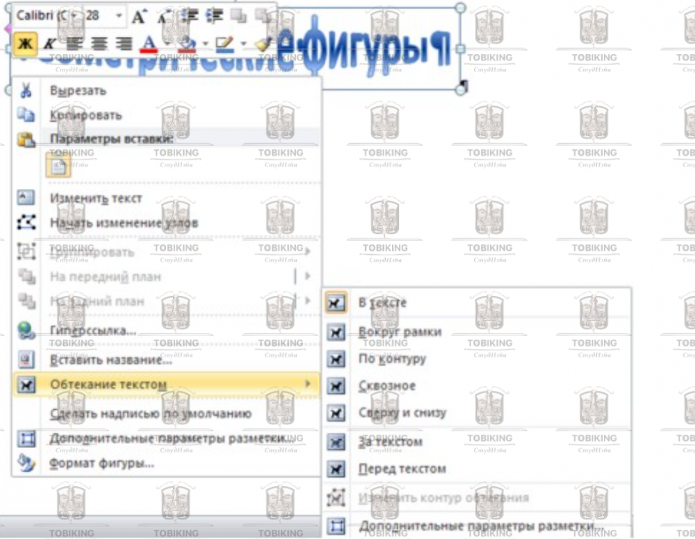 • Для всех графических объектов установите обтекание В тексте (Рисунок 2)