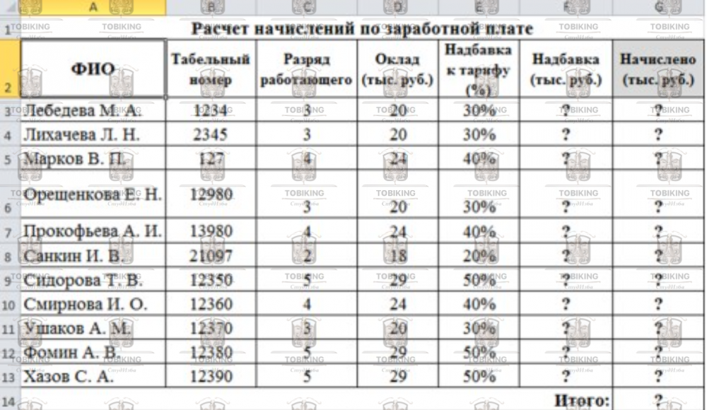 Создайте в Excel или другом табличном редакторе таблицу расчета заработной платы.