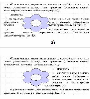 • Обтекание страницы; Обтекание слева; Обтекание справа и прочее (кнопки, позволяющие формировать взаимное расположение рисунков и текста (рисунок 5 а,б)).