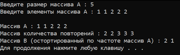 Сформировать массив Б, отсортировав элементы массива А по количеству повторений (при этом удалив дубликаты)