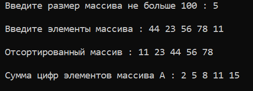 Сортировка массива по возрастанию суммы цифр элементов.sln
