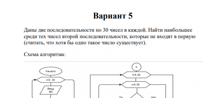 Главная » Учебные материалы » Информатика » Лабораторные работы » МГТУ им. Н.Э.Баумана » 1 семестр » Номер 4 » Вариант 5 » Даны две последовательности по 30 чисел в каждой. Найти наибольшеесреди тех чисел второй последовательности, которые не входят в первую(считать, что хотя бы одно такое число существует)