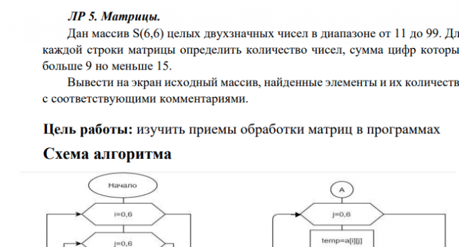 Главная » Учебные материалы » Информатика » Лабораторные работы » МГТУ им. Н.Э.Баумана » Несколько классов/семестров » Номер 5 » Вариант 5 » Дан массив S(6,6) целых двухзначных чисел в диапазоне от 11 до 99. Для каждой строки матрицы определить количество чисел, сумма цифр которых больше 9 но меньше 15. Вывести на экран исходный массив, найденные элементы и их количество с соответствующим