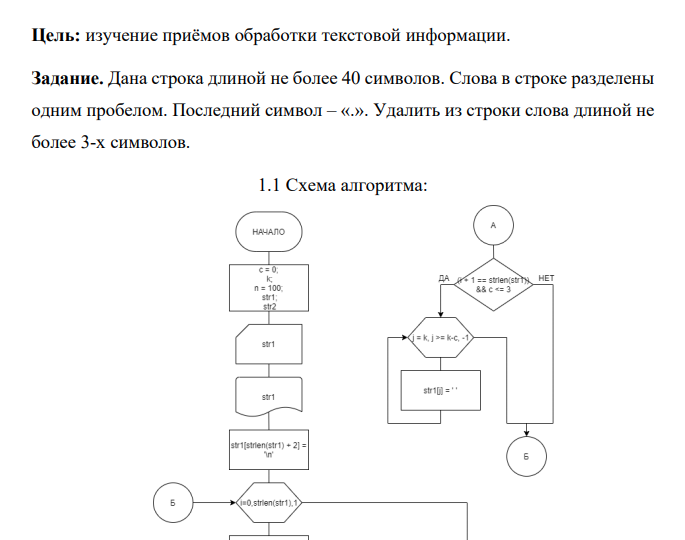 Цель: изучение приёмов обработки текстовой информации. Задание. Дана строка длиной не более 40 символов. Слова в строке разделены одним пробелом. Последний символ – «.». Удалить из строки слова длиной не более 3-х символов.