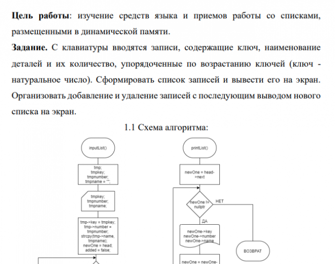 Цель работы: изучение средств языка и приемов работы со списками, размещенными в динамической памяти. Задание. С клавиатуры вводятся записи, содержащие ключ, наименование деталей и их количество, упорядоченные по возрастанию ключей (ключ - натуральное число). Сформировать список записей и вывести его на экран. Организовать добавление и удаление записей с последующим выводом нового списка на экран.