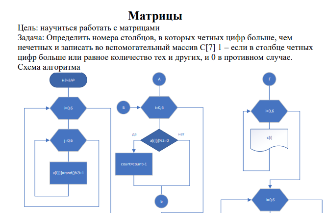 Для студентов МГТУ им. Н.Э.Баумана по предмету ИнформатикаОпределить номера столбцов, в которых четных цифр больше, чем нечетных и записать во вспомогательный массив С[7] 1 – если в столбце четных цифр большеОпределить номера столбцов, в которых четных цифр больше, чем нечетных и записать во вспомогательный массив С[7] 1 – если в столбце четных цифр больше