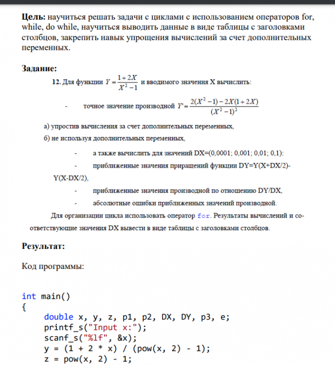 Цель: научиться решать задачи с циклами с использованием операторов for, while, do while, научиться выводить данные в виде таблицы с заголовками столбцов, закрепить навык упрощения вычислений за счет дополнительных переменных.