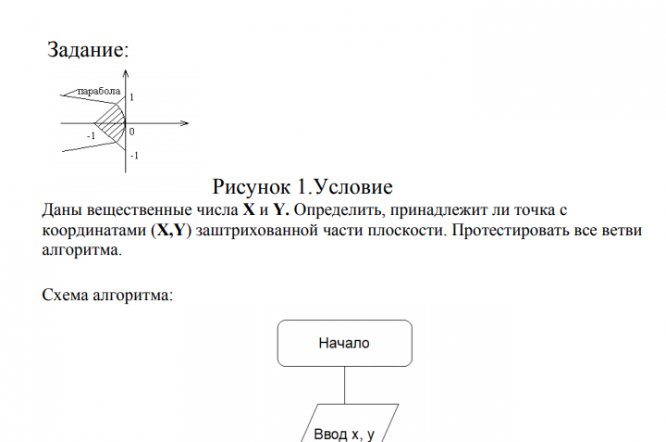 Даны вещественные числа X и Y. Определить, принадлежит ли точка с координатами (X,Y) заштрихованной части плоскости. Протестировать все ветви алгоритма.