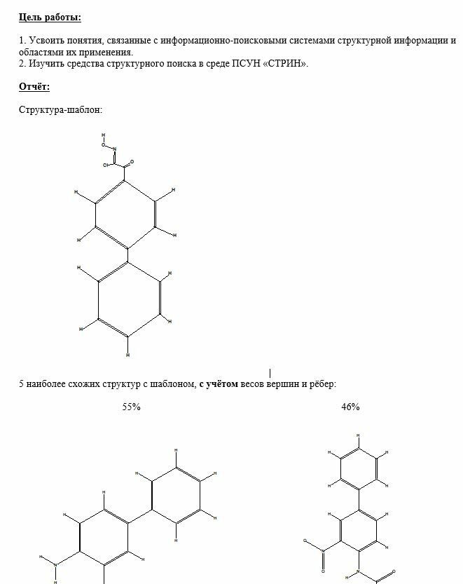 Лабораторная работа №7 - Задачи поиска структурной информации в базе структур и методы их решения с помощью ПСУН «СТРИН»