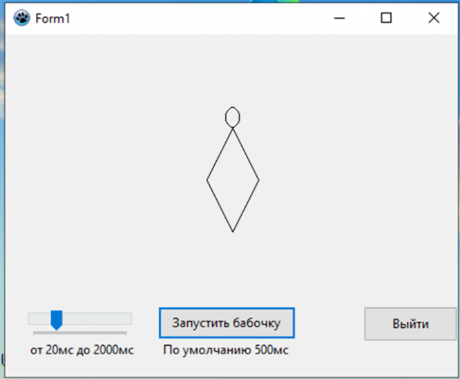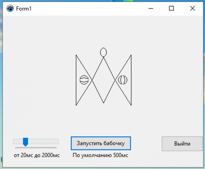 Задание на графику и анимацию. Разработать программу бабочка машет крыльями с регулированием скорости анимации.