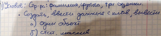 Для студентов МГТУ им. Н.Э.Баумана по предмету ИнформатикаС++. Структура: фамилия, группа, 3 оценки - создать, ввод с клавиатуры. Вывести: а) 1 объект; б) стат. массив; в) по указателям. Считать массив структС++. Структура: фамилия, группа, 3 оценки - создать, ввод с клавиатуры. Вывести: а) 1 объект; б) стат. массив; в) по указателям. Считать массив структ
