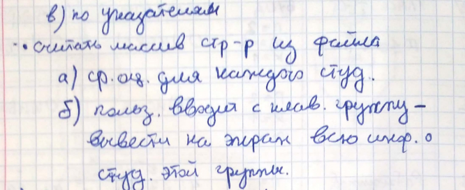 С++. Структура: фамилия, группа, 3 оценки - создать, ввод с клавиатуры. Вывести: а) 1 объект; б) стат. массив; в) по указателям. Считать массив структур из файла, вывести: а) ср. оценку каждого студента; б) всю информацию о студентах введенной группы